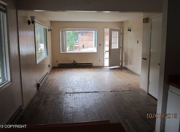 Quite a bit of space to get creative and make it home. Older property but huge potential. Unfinished basement-storage shed-detached 2-story garage. Lot is sloping but size of 2 city lots surrounding and has a ramp for EZ access to home. In neighborhood across from the Seldovia Slough.