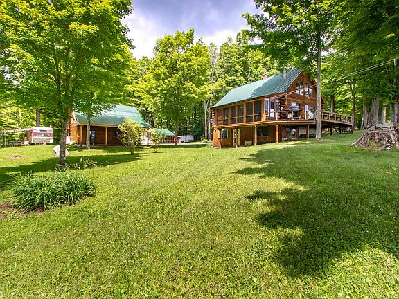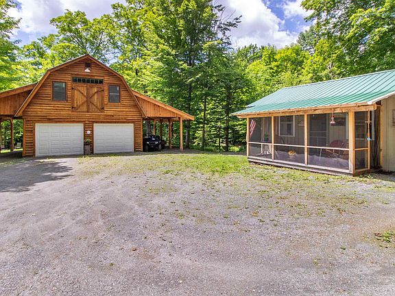 Charming Log Home with Guest House on 7+ Acres in Derby, VT. Welcome to 370 Bates Hill Road, a beautiful log home nestled on 7.23 private acres in the heart of Vermont’s Northeast Kingdom. This warm and inviting 2-bedroom, 2-bath home offers a flexible layout with a cozy loft, a full mostly finished basement, and both a deck and screened-in porch—perfect for enjoying the peaceful setting. The kitchen features an island with an electric range, plus a classic wood cook stove for added charm and functionality. A detached studio-style guest house with a ¾ bath and kitchenette is ideal for visitors, rental income, or a private workspace. The oversized 2-car garage includes dual lean-tos and a large heated workshop above—perfect for hobbies or home-based business. Wander through the mature maple trees and private trails, or hop on the nearby VAST snowmobile trail. Enjoy breathtaking views of Bald Mountain and the adjacent open field. Located just minutes from lakes, hiking, skiing, and all the outdoor recreation the Northeast Kingdom has to offer, this property is a rare and versatile retreat.