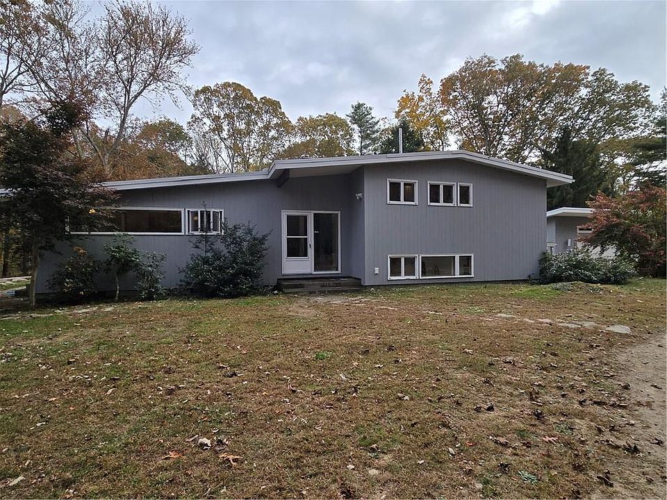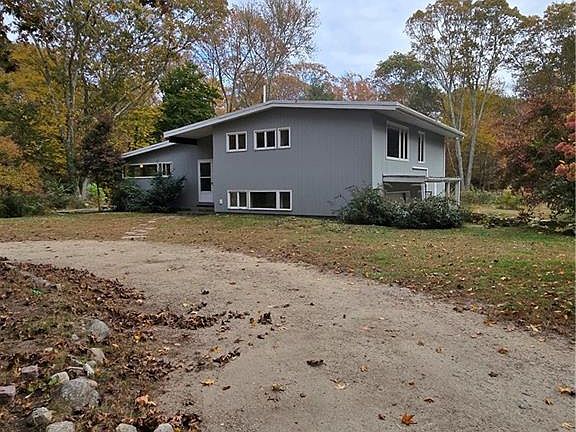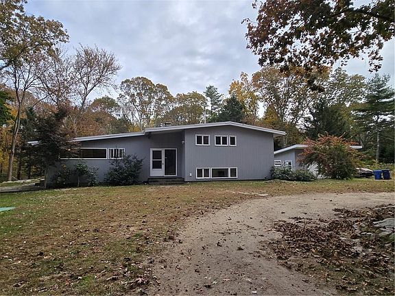 Spacious mid-century South Kingstown home awaits a new owner! This tri-level open floor layout allows for creativity & multiple living areas. The light filled galley style kitchen offers plenty of built in storage and counter space. The generous main level dining/living area is drenched with natural sunlight from the floor to ceiling windows, and a brick fireplace. The upper level offers 3 nice sized bedrooms and 2 full baths. The lower level consists of 2 additional rooms, laundry room and an open space that could serve as a family room, home office, gym or additional storage. There is also access to the integrated garage. The property has hardwoods throughout the main and upper level. Heat & Air mini split combos on all levels (2019), new electrical wiring (2019), & a tankless water heater (2019). This home is equipped with solar panels, as well as newer mechanicals for maximum efficiency. The architect designed detached garage (built 2019) has a solar car charger. Set on a 1.5 acre serene and tranquil wooded lot... privacy abounds! With some cosmetic touches, this gem will shine! 1 mile to the University of Rhode Island and close proximity to South County beaches. Please note: Property being sold as is and all inspections shall be for informational purposes only.