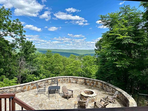 Nestled in the Ozark Mountains, sits this well maintained FULLY FURNISHED Cabin & guest house with an amazing view!! The main cabin features an open living area with tall wood ceiling along with a wood burning stove and a spacious kitchen adjoined by a walk in pantry/laundry room. The master bedroom is also on the main floor with a completely remodeled bathroom. Upstairs is a 1/2 bathroom, open bedroom, and a sitting area/nook. Off the back deck of this home is a large patio area made of stone, built in firepit, and plenty of room for outdoor entertainment. The property also takes in a portion of a shared pond! The guest cabin features 1 bedroom/1 bathroom and makes the perfect guest cabin or vacation rental! The main home has had my updates recently! An added BONUS is an additional lot with a storage building, carport covering, and orchard! This property is beautifully landscaped and very inviting. Located a short drive to Downtown Mountain View!