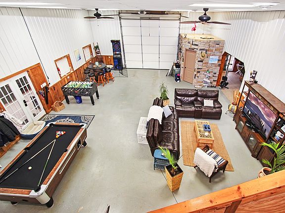 UNIQUENESS at Kentucky Lake! 2 separate quarters! Open living-storage quarters, 2200 FT- well built, central heat/air, open great room-entertainment, 1 bedroom, 1 upper level sleeping loft, 1.5 bath, kitchen/ dining area, laundry area, tall garage door & a 10 x 50 FT covered patio--then--across to the other lot you find another living-storage quarters currently used as a large gym/guest quarters with 1 bath, covered carport with 14 x 20 storage room behind and full length garage at 14 x 90. Your location is key, being within 1 mile to Kentucky Lake launching/marina/restaurant as well as a deeded easement across the street to access to Lake. Ideal for family-or-endless possibilities!!
