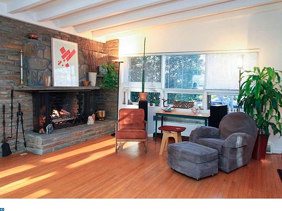 Beautiful, well-maintained mid-century modern contemporary home with a long list of upgrades and improvements. Abundant living space for the whole family plus the home is zoned for a home office. Lovely entrance hall with flagstone floor leads to the eat-in Kitchen with new Bosch dishwasher, new disposal, GE Profile gas oven, Kenmore side-by-side refrigerator. A dramatic stone fireplace adds a cozy touch to the expansive Living/Great Room. Dining Room with picture window and window box for your indoor garden overlooks the landscaped grounds, French doors open to attractive, screened-in porch with flagstone floor. Light filled Family Room, sunny den/office, convenient laundry room and powder room complete the first floor. Upstairs is a spacious Master Bedroom with double closet, Master Bath with new extra-wide marble topped vanity cabinet and stall shower. Three additional Bedrooms all have ceiling fans and built-ins in closets. Hall Bath. The upstairs hallway has a large cedar closet. The semi-finished basement features wine racks and a separate room for mechanicals. This home has an upgraded alarm system, 2-zoned heating and air conditioning, many new windows, new gas boiler and hot water heater. Level landscaped grounds with mature plantings. Walk to the quaint town of Merion and its wonderful shops, award winning Lower Merion Schools, train, new library and houses of worship.