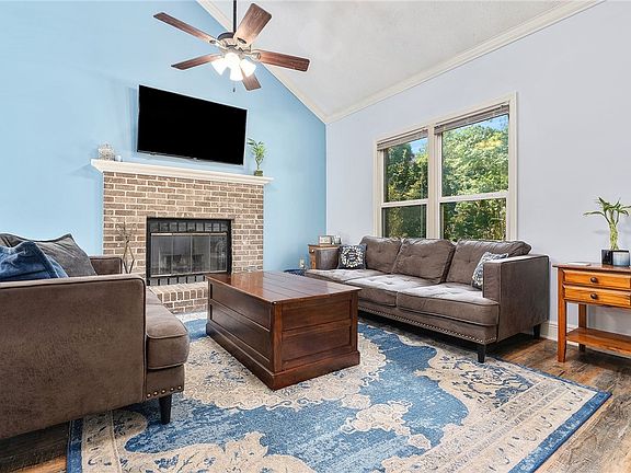 • Description: Vaulted ceiling & wood burning fireplace.,Flooring: Plank,Simulated Wood