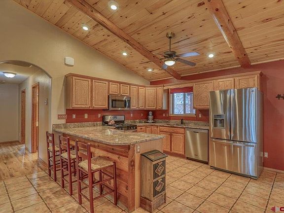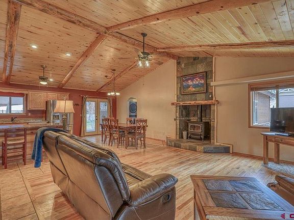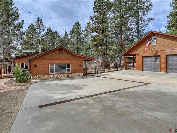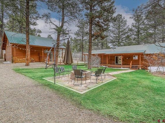 Escape to this charming Colorado mountain cabin nestled among the pines! Situated on two lots with a greenbelt beside, this cabin is an outdoor enthusiast's dream. Over 30 pine trees provide a natural canopy, offering shade on warm summer days. The secluded setting attracts a variety of wildlife, including deer, foxes, birds, squirrels, and raccoons, adding to the tranquil ambiance. The cabin is perfect for outdoor entertaining, with a well-equipped backyard for summer gatherings and a cozy interior featuring a Vermont Castings wood stove for chilly winter mornings. Located just a short walk from thousands of acres of National Forest and the Weminuche Wilderness, outdoor adventures such as hiking, mountain biking, ATV trails, skiing, hunting, camping, and fishing are right at your doorstep. For fishing enthusiasts, four private lakes stocked with trophy-size trout and bass are just minutes away, ensuring a fresh catch for dinner. The Twin Creek neighborhood in Pagosa Springs is highly desirable, offering a community built for walking, enjoy an evening stroll around the neighborhood and catch up with friends, step off into a trail in the forest for some peaceful time to recharge. With easy access to the Rec Center, clubhouse, and numerous walking trails and forest access points you can easliy live the active lifestyle your wanting. The owners have meticulously maintained the cabin, adding a concrete driveway, flagstone walkway, outdoor fire pit, and a shed for extra storage. The detached garage is oversized and features bonus space upstairs with power, perfect for a workshop or additional living space. Additionally, there is RV parking next to the garage, providing ample space for all your outdoor gear and toys. This Colorado mountain cabin offers the perfect blend of comfort, convenience, and outdoor adventure, making it an ideal retreat for nature lovers.