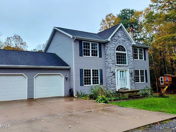 SHORT TERM RENTAL OPPORTUNITY....STEPS AWAY FROM 20 THOUSAND STATE GAME LAND. Discover your dream home in this incredible stone front residence, offering a perfect blend of class and comfort. With 3 spacious bedrooms and 2.5 bathrooms, this property is designed for modern living. Primary Suite offers a large walk-in closet and a generous bathroom equipped with a luxurious whirlpool tub, double sink new carpets e-ground heated pool set within a meticulously manicured yard, ideal for summer relaxation.MEASUREMENTS TAKEN FROM BLUE PRINTS OF THE HOME This property includes a full basement with a separate entrance, offering endless possibilities for customization, and an oversized 2-car garage provides ample space for vehicles and storage. Set on nearly two acres of land with no HOA, you can enjoy the beauty of wildlife and serene landscapes.Conveniently located with easy access to highways, making commuting to the city a breeze while still enjoying the tranquility of country living. Don't miss this opportunity to own a piece of paradise! Schedule your viewing today!