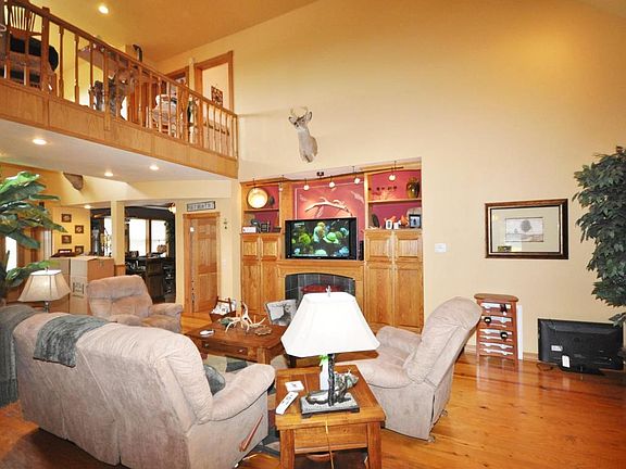 Rustic cedar lakeview home on 10 acres! 3300 sq. ft., 4 bedroom, 3 bath plus office, huge covered porch overlooking the lake, great room with propane log stove, screened porch, master suite with large walk-in tile shower, 24.5 x 24.5 garage plus large carport plus 2 Amish built 12 x 30 outbuildings, public boat ramp 1/4 mile away, 3rd party 10 x 30 boat slip available 10 minutes away, room for horses and flat spot for stables & 4 wheeler trails.