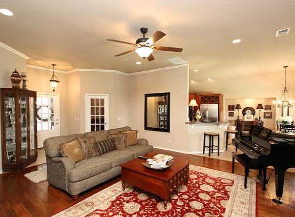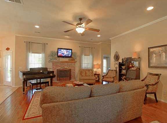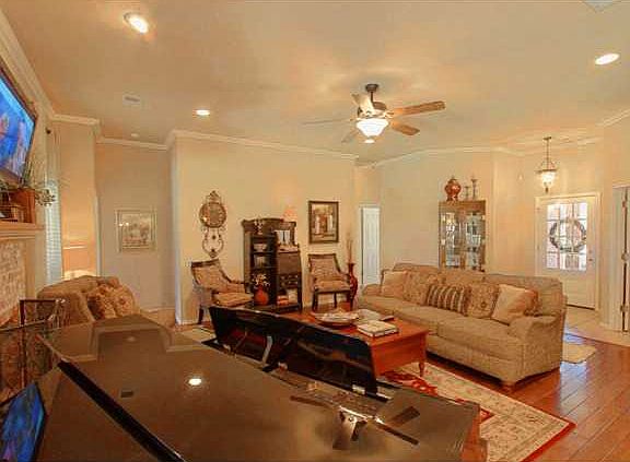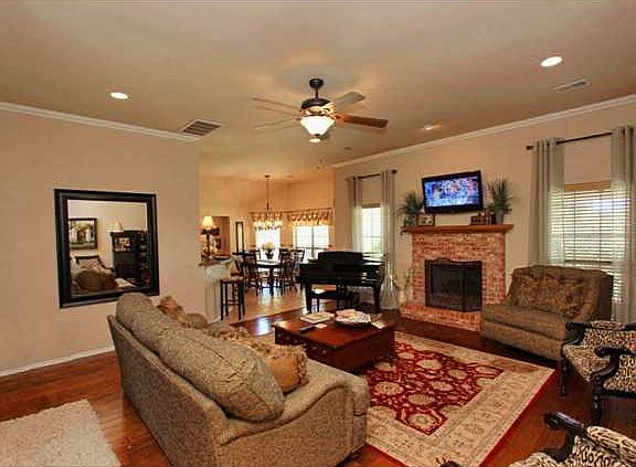 Beautiful Home is clean & Ready and includes hardwood floors in living room, crown molding & gas log fireplace. Large dining area with bay windo and niche that's perfect for a china cabinet. Kitchen cabinets include wine rack over fridge & some glass doors. Study has french door and chair rail. Master suite has whirlpool, walk-in closet, tile shower. Enjoy outdoor cookouts on the huge covered patio!