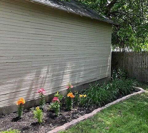 This home features 3 bedrooms and 1 bathroom with a recently carpeted third floor, new furnace, and new hot water heater. The property needs new flooring but offers great outdoor potential with a large patio, privacy fence, two garden areas, and a 1-car garage with a new roof. Trees were trimmed last summer, and the home includes a washtub in the basement.