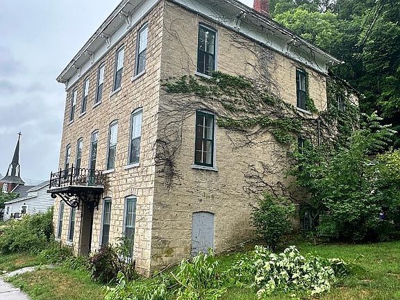 Own a piece of Lansing's history. This amazing stone building features an open staircase in the middle with rooms off of each side. The main floor features 2 bedrooms and 1 bath. The upper level is a work in progress has 3 bedrooms and unfinished bath. The upper level could easily be finished off into an apartment with it's own entrance from the back. Beautiful lot backdropped by Mt. Hosmer. There is an 1840's safehouse in the rear converted into a stable when the Rock Hotel was built in 1870 and then further converted into a garage. This entire property has been a labor of love from the owner and continues to be a work in progress. Take this opportunity to own this incredible property and finish it off the way you would like.