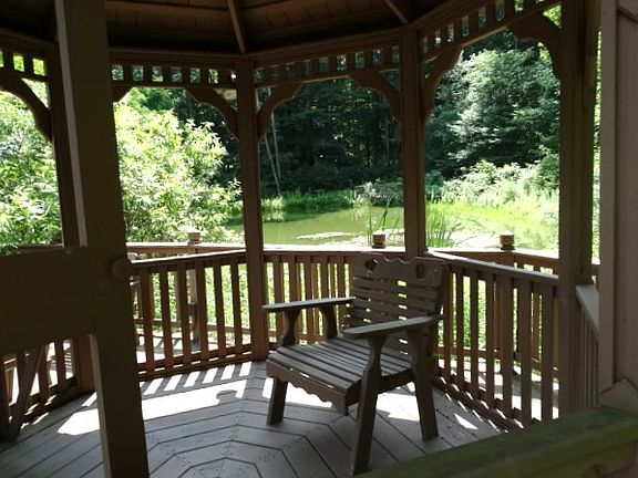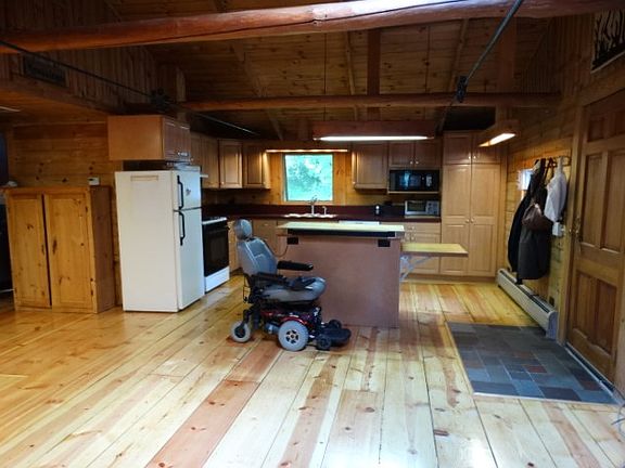Your own oasis in the country.Log Cabin on 8.68 acres w/pond,Perennial garden beds,Gazebo,deck,garage w/carport and 3 small sheds.This open concept home has vaulted ceilings and sky light.The family room could create a 3rd bdrm.Gas fireplace space htrs in living & family rooms.14 Kilowatt generator & heated concrete sidewalk. Contiguous to State Land.Undergrd elect.