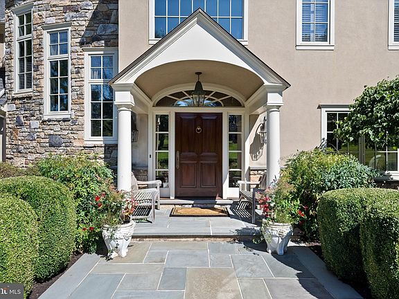 Privacy, luxury, and spacious living all come together to make 370 Dutton Mill Road a spectacular home. In its first listing ever, this architectural masterpiece constructed by renowned builder Ken Casella & Assoc. is situated on 9 private acres in the prestigious Radnor Hunt community in Willistown township, and offers the best living the Main Line has to offer. With an abundance of comfortable design throughout this wonderfully maintained home, this tranquil property has an abundance of outdoor space that is sure to impress with multiple porches, a large flagstone patio with adjoined fire pit. Walk over the stream, on a custom constructed bridge, to the private tennis court. The multi-access driveway with paved motor court welcomes you to the property displaying immense curb appeal with lush, mature landscaping. Inside, the open and airy foyer sets the tone for the rest of the home. Pristine American Cherry hardwood floors and plenty of windows are glittered throughout, drenching the home with warm natural light. To the right as you enter, you will find the ample dining room that opens into the fully equipped kitchen. This masterful kitchen and breakfast area offers two islands, gorgeous granite countertops, plenty of crisp white cabinetry, high-end stainless-steel appliances, and a gas fireplace to warm yourself while you sip your coffee during the fall and winter mornings. Next is the family room which is complete with built-in shelving and a stylish coffered ceiling. Close by, the formal living room features a gas fireplace and french doors that lead to its own flagstone patio. An elegant study adorned with more built-in shelving has its own private porch where you can work and enjoy the privacy in your down time. Conveniently next to the kitchen is a sun-washed second office, providing ample space for both work and leisure. Adjacent to a spacious laundry room and a mudroom leading to the attached garage lies the first-floor primary suite. With two walk-in closets and spa quality bathroom with double sink, an extensive glass-enclosed shower, and a whirlpool/soaking tub offers you your own private oasis. The first floor is conveniently complete with two powder rooms. Upstairs you will find the 4 additional well-sized bedrooms, two of which share a jack-and-jill-style bathroom. The following 2 include their own ensuite bathrooms, one with an attached bonus studio gives the feeling of a private second floor guest suite. Additionally, the second-floor includes a den with a large walk-in storage closet and full laundry space. The lower level of the home is fully equipped with a theater, billiard room, wet bar, ice-maker, temperature-controlled wine cellar, yoga studio with sauna, fitness gym, and a full bathroom. All of which can easily access the grand outdoor patio space through its own walk-out entrance. An additional 3 car garage located at the upper end of the property, is makes an excellent space for additional storage, specialty vehicles or seasonal equipment and tools. 370 Dutton Mill is ideally situated minutes away from desirable shopping and dining destinations, highly ranked schools, as well as the Amtrak Train station, providing everything your family could want or need. This exclusive home is distinguished by its quality indoor living spaces, open and airy floor plan, an abundance of outdoor retreats, and supreme location. All of which combine to make this the dream home for its future owners.