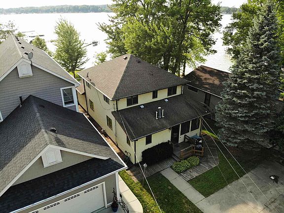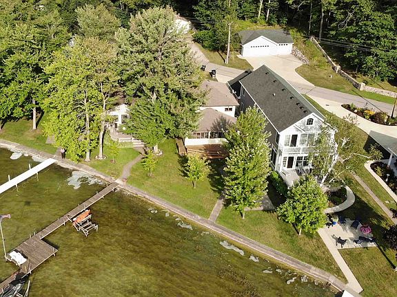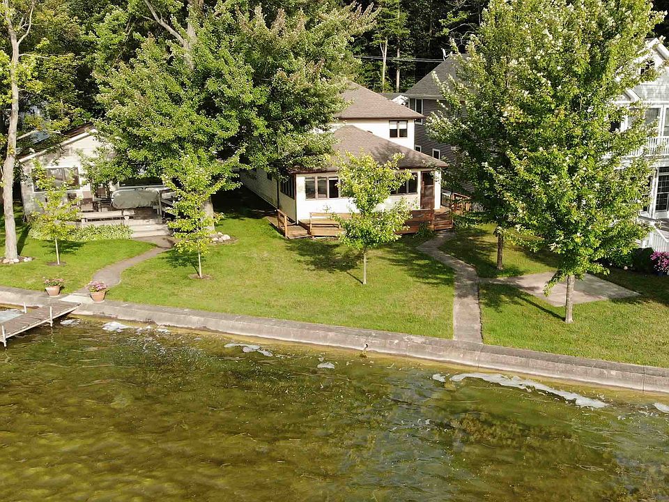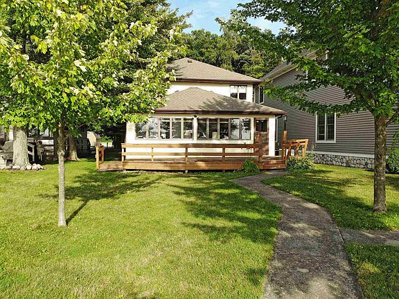 CLEAR LAKE MAGICAL SUNSETS: This 5 bedroom, 2 full bath year-round lakefront home has been a gathering spot for years. The large open living room with fireplace and open dining and kitchen areas has an view of the lakefront yard for watching over revelers while preparing snacks and meals for unending play. The breakfast room is welcomed by sunshine and in the evening it doubles as a quiet, cozy nook away from all the lakefront action. Other features include main-level bedroom, full bath and laundry, one-car garage directly behind the home and an additional oversized 28x28 garage across the road on an almost half acre extra lot.