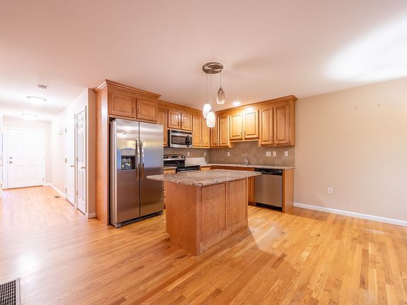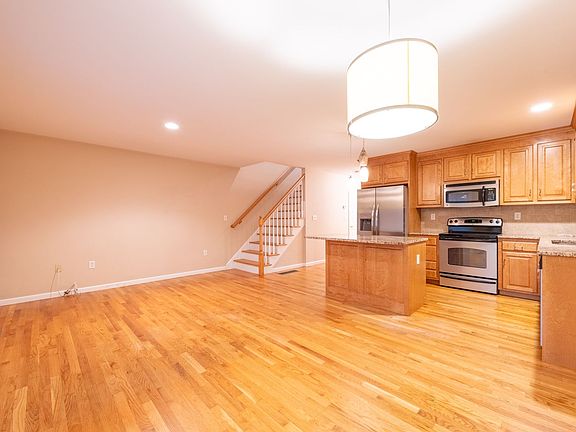 Discover comfort and style in this spacious 2-bedroom, 2.5-bath condo offering 1,384 sq. ft. of beautifully designed living space. The main level features gleaming hardwood floors, an open-concept living and dining area, and a fully applianced kitchen with stainless steel appliances. Sliders off the living room open to a private deck, perfect for relaxing or entertaining. Upstairs, both bedrooms are generously sized and include their own full ensuite bathrooms and large closets, providing plenty of privacy and storage. The finished basement adds even more versatility, ideal for a home office, gym, or cozy den. Central air will keep you comfortable year round.