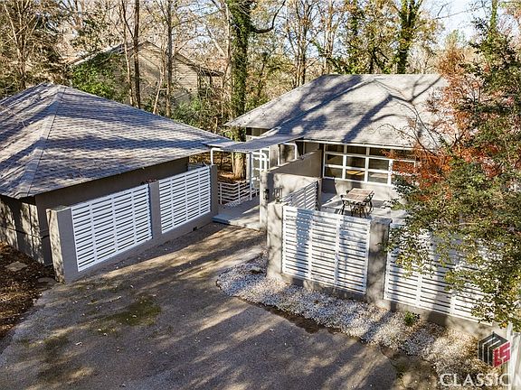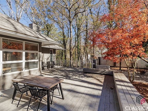 This is one of the most unique homes in the 5 points area. This two level, 4 bedroom/4 bathroom contemporary property is 3352 sqft and is nestled on a private lot in the Bedgood-Glenwood neighborhood just over 1 mile from the heart of Five Points. Built in 1985, the main level has hardwood floors throughout (except the kitchen and the attached sunroom/home office room). The open floor plan lends itself to hanging with friends and family. The kitchen has cabinets to match the era along with beautiful tiled backsplash and opens to the dining area and extra living space. A full bath and bedroom are just off the kitchen as well. The living room has a wood burning fireplace and built-in shelving and cabinets along with access to the courtyard. Currently used as the dining area, this space has built-in bench seating along the wall of windows that look out to the enclosed courtyard and deck making it a great spot to gather. The courtyard is very private with plenty of entertainment space on the deck and room for landscaping or garden beds around the deck. Making your way through the front entry and to the lower level you'll find the master bedroom, master bath and large closet. The master bath features a new tub with overhead skylights. Just off the master bedroom is another bedroom and brand new bathroom with access to the backyard. Also on the lower level you'll find the laundry room and plenty of storage space. At the driveway entry to the home there is walkway access to the incredibly designed and constructed 920 sq ft carriage house with full bathroom and bedroom, kitchen and living area. This space was originally designed as a music studio as you'll notice with the sound baffles and angled design of many of the interior walls but has been converted to carriage house for this property.  It's also sound proof!!  With it being a short distance to all of the fantastic shops and local businesses of Five Points, Memorial Park, Barrow Elementary, Sanford Stadium, Foley Field, Stegeman Coliseum and downtown Athens it's a perfect place to call home. You get the convenience of what Athens has to offer while being able to return to the coolest place you should call home!