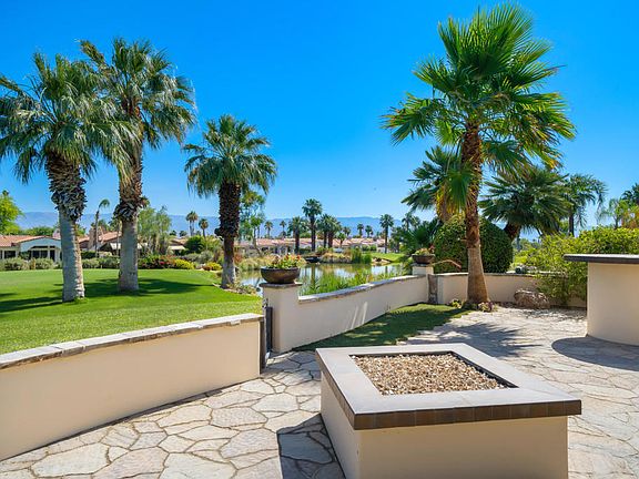 Be the first on the golf waitlist with this Bougainvillea 2 home at Indian Ridge CC in Palm Desert CA! Owned Solar! Private Spa and lake views! Bright and open floor plan with sweeping elevated north views of lake and the 9th hole of the Arroyo golf course...and is 2 houses away from a community pool/spa. Gorgeous updated landscaping & outdoor area! Built-in BBQ & outdoor refrigerator...and a built-in raised, organic garden on the east side of the home. Private Spa also has a cooling system - perfect to use as a dipper in warmer weather! Neutral Tile floor throughout (carpet in bedrooms). Offered Furnished per inventory. Kitchen features granite countertops, island and stainless appliances. The large master bedroom opens up to the spacious bathroom with a walk-in closet, dual vanities, and a separate shower and tub. Guest bedrooms are generous, and both have private en-suite bathrooms. This home has Owned Solar for lower electric bills!