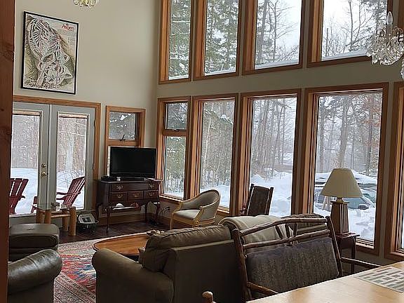 This is a resort home with vaulted ceilings, located in a wooded lot with views on all sides. It is clean, well-constructed and well-maintained.