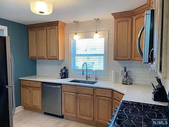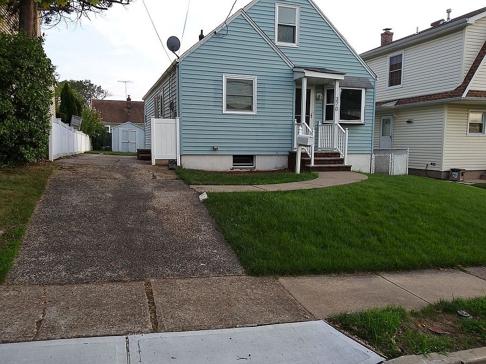 Great independent single family house in great community, with front-yard and a huge back-yard. It has two floors, with two bed rooms, a large dine in kitchen, a large living room, and a very nice bathroom on the ground floor, and two bedrooms, bathroom, with 4 huge closets on upper floor. All the floors are either hard wood, or tiles. Kitchen and bathroom were recently renovated. Full finished basement with recreation area and bathroom. The house is equipped with washer/ dryer, dish washer, heat, hot water, gas, electricity. Lots and lots of storage in full basement, closets, attic, and shed. It has one long driveway, and lots of parking in front of the house. It has concrete foundation, and everything else is up to date. Upgraded windows. Close to train station and buses to NY.