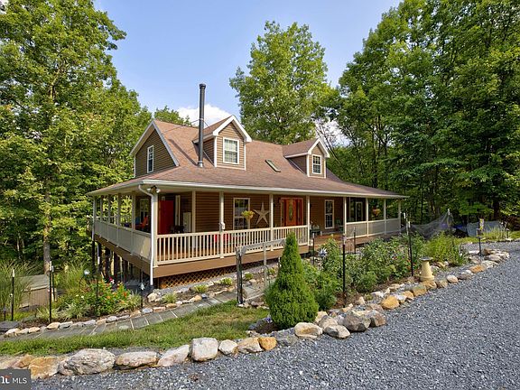Discover the perfect blend of rustic charm and modern amenities in this exceptional mountain property. Welcome to your dream home in “The Crossings at Great Cacapon”. This custom-built residence offers the perfect blend of comfort and rugged style, nestled on a serene 3-acre cul-de-sac lot within this gated community. Boasting 3 spacious bedrooms and 3 well-appointed baths, this home ensures ample space for family and guests. The main level features a luxurious primary suite, providing convenience and privacy, while the gourmet kitchen makes entertaining a breeze. Both the upstairs and fully finished basement expands your living area, offering endless possibilities for entertainment or additional accommodations. The property includes a 2-car detached garage with its own basement, ideal for storage or a workshop. The wrap around and screened porches provide plenty of space to relax with family and friends. This perfectly located lot provides plenty of space as you enjoy the outdoor spa and fire pit amongst the stars and natural surroundings. The Crossings at Great Cacapon is a haven for outdoor enthusiasts. Enjoy fishing, hiking, canoeing, and swimming with easy river access. Whether you're seeking a vacation retreat or a full-time residence, this home delivers a lifestyle of adventure and tranquility. Make The Crossings at Great Cacapon your new home today! Owner still allowing showings. Taking back-up offers.
