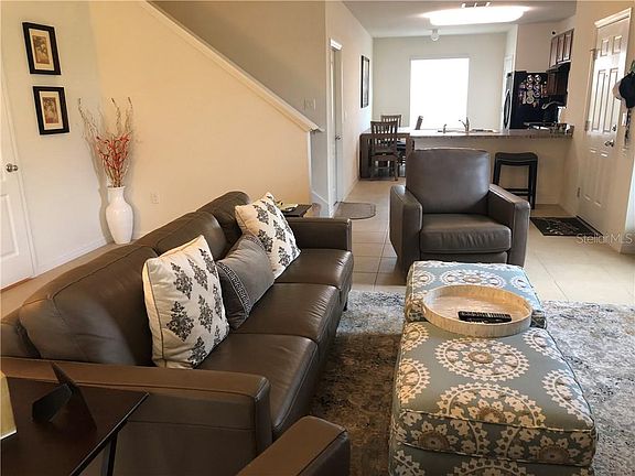 Come and see this charming well maintained END UNIT town home which happens to only be 2 years old! The 3 BEDROOM, 2 1/2 BATH home is located in the beautiful LAKE BLUFF COMMUNITY. When you walk into the Kelsey designed open floor plan home, to the right is the kitchen with dark wood cabinets. To the left is the FAMILY ROOM with a half bath, OFFICE NOOK and through the sliding doors is a view of the SCREENED IN LANAI and community lawn area. The home upstairs has a nice open hallway with plenty of closet space and laundry room with washer and dryer. The master bedroom has its own private bath. The 2nd and 3rd bedrooms share a hallway bath. This home is very comfortable with lots of natural lighting. The community has a POOL! Close to I-4 exit 58, banks, supermarkets, shopping center, gas stations, Disney parks. CALL ME TO MAKE AN APPOINTMENT! Camera surveillance at the home.