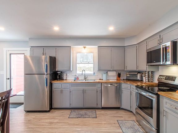 Enjoy easy living in this updated and affordable 3-bedroom ranch on .5 acre! The home offers 1,210 square feet of living space on the main floor, plus additional finished space in the basement. Stepping inside, you’ll be delighted by all the renovations, which include a new mudroom, new flooring, fresh paint throughout, and in the eat-in kitchen, the cabinets have been refreshed with gray-blue paint and new hardware. In addition, the 2 baths have been updated. Natural light streams into the living room, where you’ll enjoy views of Owl’s Head and the surrounding mountains. Down the hall you’ll find 3 bedrooms and a full bath. A large den and 3/4-bath are on the lower level, along with a laundry area, storage space, and a putting green. Golfers will also love that you’re just minutes from the Graham Cooke-designed golf course at Jay Peak where there’s fun in every season, from skiing and ice skating to live music, movies, and the indoor water park. Snowmobilers won’t have to travel, as the VAST trail borders the property. A large back deck off the kitchen and overlooking the open backyard is perfect for grilling, entertaining, or just relaxing. Access Comcast high-speed internet for remote work. The attached 1-car garage leads directly into the mudroom with plenty of room for boots, shoes, and jackets. This home is being sold furnished, so whether you’re looking for a year-round home or a Northeast Kingdom getaway, you’ll want to come see it for yourself.