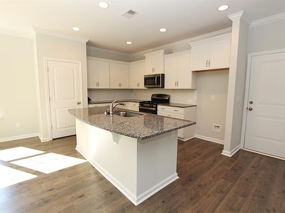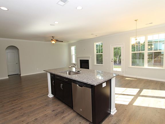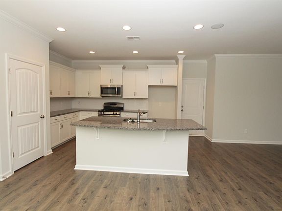 The Newbury featuring a beautiful front porch. Plus 4 Bedrooms 3.5 Baths and master suite is on the first floor guest suite with private bath is upstairs that's the 4th bedroom. Large flex room with french doors can be used as an office or dining room. Open floor plan with kitchen island and bar counter top. Natural gas fireplace with belle meade mantle and Italian slate hearth. Plus covered porch outside to enjoy your yard. Master suite with boxed ceiling crown molding, separate shower and garden tub and double vanities plus large walk in closet. Upstairs features one guest suite with its own private bath. The other two bedrooms share a large bath with private water closet. Energy efficient home with barrier sheathing, HERS rating, Low e windows and more. This home is MOVE-IN READY