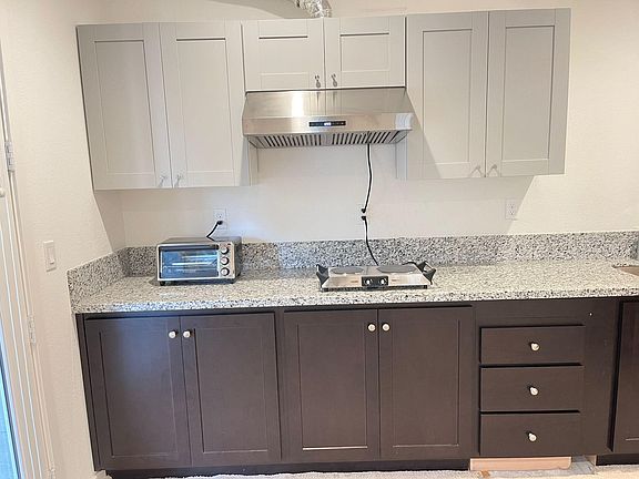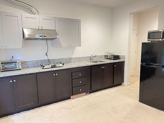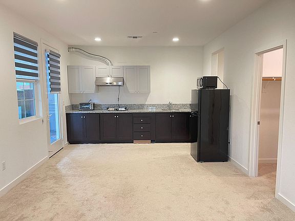 Unfurnished Studio with full bath, closet and small sectioned space that can be used as office space or for study. Kitchenette with vent and two burner electric stove top and 11cuft refrigerator. In home compact washer and dryer for lite use. Utilities included for reasonable use.