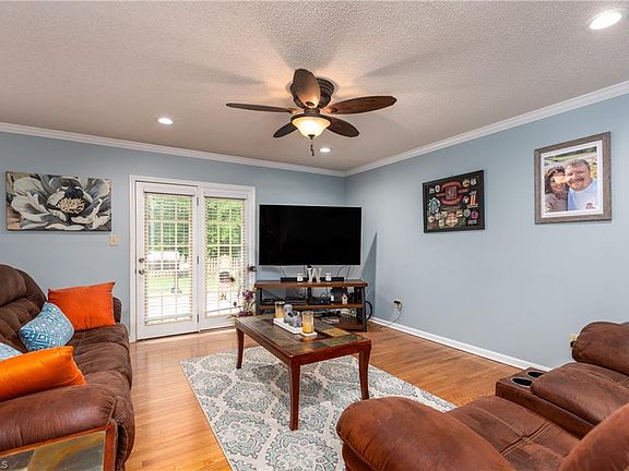 Terrific move-in-ready, one level living in a country setting, convenient to highways that will take you anywhere in the triad & beyond. The green back yard is flat and fenced, encompassed by trees for tranquil morning coffee or festive evening BBQ's. The functional interior features beautiful hardwood floors in living areas, separate dining space, and master suite with two large master closets. Seller extended parking by adding a large concrete pad, perfect for oversized work truck or basketball goal.