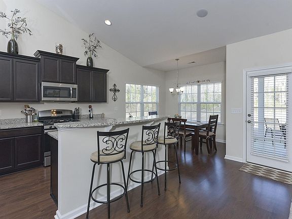 - RoomKitchenFeatures: Granite Counters, Kitchen Island, Pantry, Recessed Lighting, Eat-in Kitchen, Cabinets-Stained, Floors-Laminate, Bar