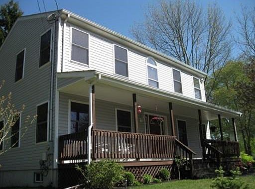 Acushnet Colonial in excellent condition w/ Open floor plan. Good sized kitchen w/ Stainless appliances opens to a lovely front to back living room w/ sliders to a 12x12 deck. An adjacent dining room could also be used as an additional family room. Half bath w /tiled flooring, granite vanity top & a laundry room on this level. Second level has a front to back master suite including a walk-in closet & full bath. Another large bedroom also w/ a walk-in closet, 3rd bedroom w/ double closet, a full bath completes this level. Full basement has good height for future finishing. The corner lot is bordered by mature trees & a stone wall, a recent shed is included. Well located home with-in a short distance to highway access. Relax on the front farmers porch of your beautiful & spacious home!