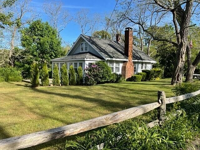 Ultra charming family home that has been polished to perfection. This Cape bungalow was moved from it's original location by the town green down the lane to it's private scenic lot abutting conservation. From the road side it seems a modest presence but the full access walk out basement to the rear adds so much more than what first appears. Updated interior starts at a tiled entry that leads to the kitchen. Plentiful soft close cabinets freshly painted a midnight blue pair well with the white quartzite counters, tiled backsplash, white trim boards & bamboo flooring. Off the kitchen a butler's pantry/laundry room adds even more storage w/ counter space, open shelving & additional cabinetry. The kitchen enters to a nicely sized central living area w/ original oak flooring & masonry fire place. adjacent to the living area, a bonus room with closet that could serve many purposes. First level full bath is renovated w/ tile floor, updated tub/shower and floating rustic wood shelving. The far side of the living area opens to a refurbished 4 season sunroom, w/ banks of windows & exit to new, large, ground level deck. Upstairs the landing opens to a central common living area w/ original built ins & picture window that overlooks the backyard. The private 2nd level bedroom has deep closet & eve access. Another renovated bath on this level has a stall shower & roomy linen closet. The walk out basement has garage door access to the back yard, a 3rd full, renovated bath w/ tub/shower combo, loads of shelves for storage & mobile worktable. A circular flow around the exterior of the home shows off the nicely designed landscape with privacy hedge, rose bushes, stairs to the backyard, a Cape Cod, hot & cold, outdoor shower, & gently sloping terrain to the natural woodlands Enjoy moonlit nights over the wooded back yard, bird calls, strolls to the Windmill Green & Bandstand for seasonal festivities, and a quick run to the convenient Eastham Superette. Close to beaches, ponds and the bike path. House is vacant. Photos with furnishings have been virtually staged.