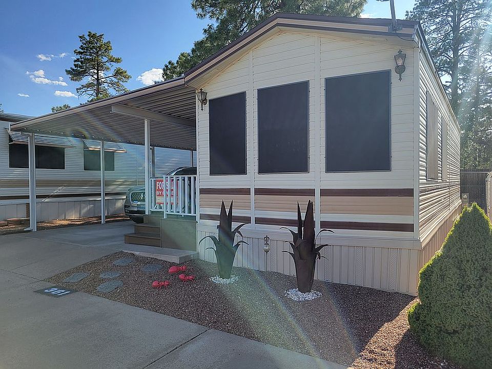 This has been a wonderful getaway home for us! Prime location on the edge of the beautiful Venture In park community! Newly renovated and updated in 2022: shingle roof replaced, new laminate wood flooring throughout, new toilet, new bath vanity, interior painted throughout, front covered deck, all lighting and ceiling fans replaced, solar screens added, private back yard was enclosed to make for a great dog run space and garden area. New Furnishings, most in 2022, included with purchase: new Ashley sofa, new side end tables w/ lamps, new queen size bed, TV, dining table w/ 4 chairs, desk w/ chair, patio table w/ chairs, new blackout curtains, decorative wall art, front metal yard art, kitchenware. Upgrades include: Central air conditioning and heat, Built-in radio system with ceiling speakers in bedroom and living room, mirrored closet doors. Dish TV set up and ready. Located in the beautiful Venture In Park community, which provides many amenities. To include: community center, fitness room, arts & crafts, billiards room, bocce ball, indoor & outdoor shuffleboard, scheduled group activities. Annual HOA fee of $4950 covers trash, water, amenities & maintenance of the community, and security including the time which the park is closed. Fee has been paid in full for the 2023 season. Internet service option available through the community for $300 per season, which has been paid in full for the current season. Venture In is open May 1 through October 31 for seasonal residency, which makes it a perfect location to enjoy mild weather during the hot summer months. Save $ by purchasing directly from the Owner. To view please contact Seller, Patti at 858-761-2058. Actual address is 270 N Clark Rd Space #361!
