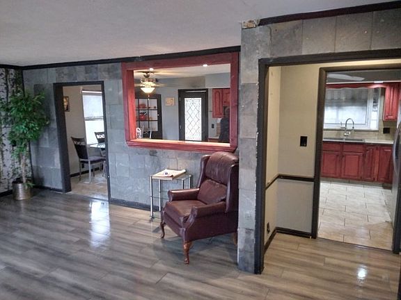 Huge ranch with 5 bedrooms and 3 full baths. Walk in front door to a room that has a warm feel to it. Main level has 4 bedrooms and 2 full baths and basement has recreation room, bedroom, full bath and laundry room. Wrap around wood deck mostly complete. Be careful, railing and a enclosed porch are incomplete. Needs updating. A couple a sheds in the back. Walkout basement with integral garge.
