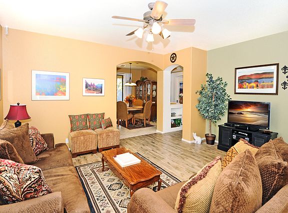 Nice home with beautiful finishes! Granite countertops in the kitchen and baths. Stainless steel appliances and the refrigerator is included. new ac in 2016, newer water heater, newer front load washer, dryer included. Lighted ceiling fans. New carpet . All new paint inside and out. Sunscreens for entire home. Professionally installed dog door goes out to gorgeous backyard with curbing and artificial lawn. New irrigation system and timer clock. This is a great home and it will go quick!!!