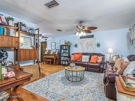 The garage has been transformed into a functional fourth bedroom, offering flexibility for guests or additional family members. A fully enclosed screened patio currently serves as a class room offering endless potential as a home office, or studio. The expansive lot boasts mature trees for natural shade and privacy, with ample room for outdoor activities.