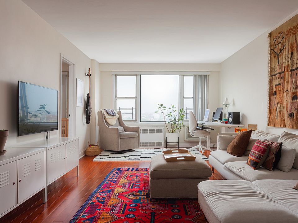 Park Towers - 2 Bedroom Coop Rental Enjoy the picturesque views from this 11th floor, corner unit in Kensington's well sought after Park Towers. Located at 370 Ocean Pkwy, just off Cortelyou Rd, this spacious 1100 sqft, 2 bedroom unit enjoys all day sun from both southern and western views. The large over sized living room flows into a large dining area, perfect for entertaining. There is a separate modern eat-in-kitchen with a window and smart booth seating. It features stainless appliances including a dishwasher and quartz counters. The master bedroom is king size and the 2nd bedroom has room for a queen and has direct access to the private enclosed terrace. The renovated modern bathroom is bright and clean with white tile. The apartment has new hardwood floors throughout and generous closets including a walk-in at the entrance. Newer AC units in each room are provided in their sleeves and keep the unit cool in the summer without blocking the view. Enjoy almost year round sunsets from the private terrace/ sunroom on the quiet backside of this Ocean Pkwy doorman building. Park Towers is Kensington's Premier 24hr. doorman coop, has a live-in super, central laundry, storage & bike room. The lobby has recently modernized and this building does allow cats, sorry No Dogs. Located near all shops, cafes, a weekend farmer's market a short walk to Prospect Park. Transportation options include the F, G,& Q trains as well as many express buses. This is a coop sublet and requires board approval so candidates with stellar financials are a must!Draft rental description