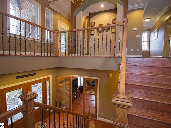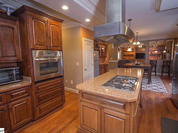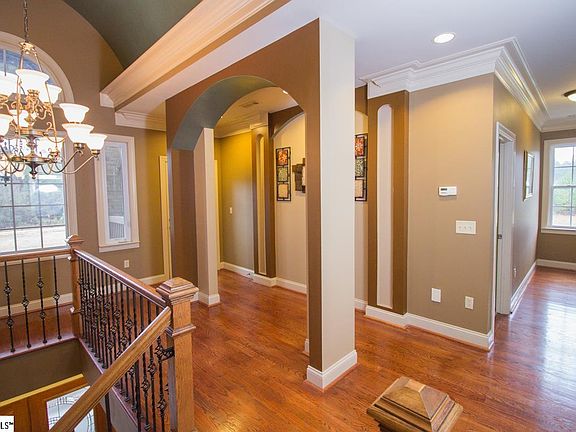 Location, location, location! Less than 15 minutes from all the dining and shopping on Fairview Road Simpsonville and 25 minutes from Downtown Greenville, with the country feel that comes with 5 private acres. You will love proximity to the booming City Scape Winery as well as fresh dairy products from Happy Cow Creamery. Upon entering this gorgeous custom built brick home, you are greeted with an open floor plan with a beautiful stone mantle fireplace in the living room, built in bookcases, and a beautiful staircase opening up the cathedral ceiling. Very spacious kitchen that includes a gas range with stainless steel hood and beautiful wooden cabinets. You will love entertaining your guest in the open and inviting dining room. No attention to detail was spared in this house. Extensive crown molding and coffered ceilings in all the bedrooms and dining room. Bonus/office on main level features a large closet that can be used as an extra bedroom for guests. Upstairs boasts two spacious bedrooms, laundry room, and a full bath as well as a covered balcony. This impressive master bedroom features private balcony, raised coffered ceiling with custom lighting, his and hers closets, a fully tiled shower, corner tub, and a double vanity. Sitting on 5 private secluded acres, this house sits in a peaceful country setting. The exterior of this home features a very large front porch with stone accents. The back porch has extra large pad as well as stamped concrete patio perfect for grilling and entertaining large parties.