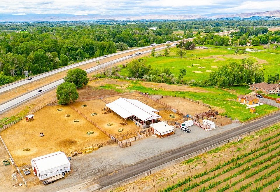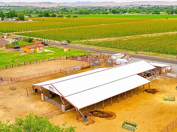 Private Stockyards on 6 acres in prime location. Turnkey, well maintained and thoughtfully designed working facility. Immaculate manufactured home. 120' X 60' hay barn, 40' X 40' shop with bathroom. 20' X 30' office, (2)20' X 12' storage sheds, 7 ft welded pipe 6 rail pens, 4 stud pens, fenced pasture. 60' X 90' outdoor arena with bucking shoot and 24' bronc pen. 20,000 lb Howe Richardson commercial scale certified by the State of Washington. Side/End/Ground loading chute, squeeze alley & chute.