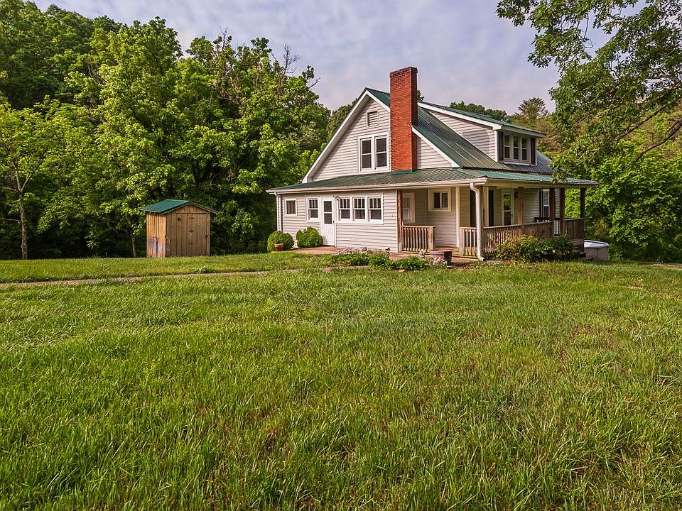 LOOKING FOR PRIVACY? This charming 3-bedroom home sits on 1.8 acres at the end of Palmer Road. From the house no neighbors are in sight! There is a nice yard for playing, woods for exploring, and a newer 2-car detached garage for working on projects. The covered front porch is the perfect spot for quiet evenings and views of Bays Mountain. Inside, the main level features a living room with fireplace, dining room with original built-in china cabinet, kitchen with walk-in pantry, laundry/mud room, main-level bedroom, and updated full bath. Upstairs are two pretty bedrooms with original hardwood and storage space. The original doors, woodwork, and staircase add great character. Other features include new flooring, low-maintenance exterior, energy-efficient windows, an unfinished basement, and 5-year-old metal roof. And it is conveniently located just 5 minutes to I-26, I-81, and the YMCA/Aquatic Center with no City taxes. Make your appointment to see today!