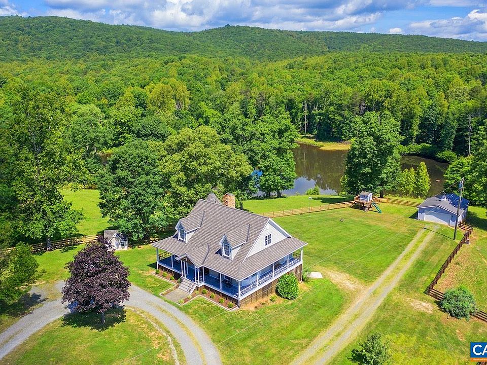 This is the property that will check every box on your wish list! Own a custom built home on 50 acres with your very own lake. The stocked lake is nearly 5 acres and has a dock and small boathouse to store all of your fishing gear. Have horses or ATVs? There is pasture with board fencing, barn, equipment building, and private riding trails. Need a place to hunt, garden, play, pursue hobbies, or work from home? There is a heated and cooled garage/workshop with storage, tree house/play set, high speed internet for work/streaming, and plenty of space to garden and enjoy the great outdoors to include woods, stream, and an abundance of privacy! Features: well constructed one owner home, wrap around porch and back deck (overlooking lake, pasture and mountains!), hardiplank and stone exterior, newly renovated kitchen with granite countertops, first floor primary ensuite with a beautiful sitting area or sunroom facing the lake, upstairs with guestrooms, basement recreation or family room (with stone surround wood stove, wetbar, and slate floors), exercise room and even another bedroom and full bath. Only 9 miles from Lovingston town hub with Foodlion, dining, banking and more; approx. 50 minutes to Charlottesville or Lynchburg.
