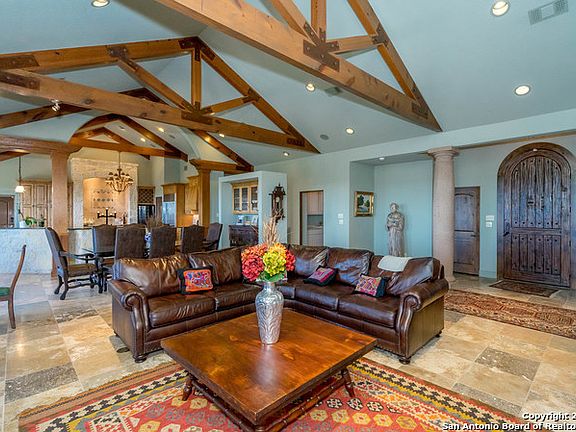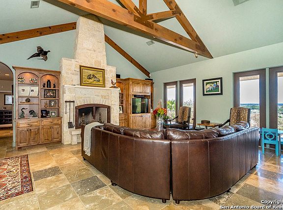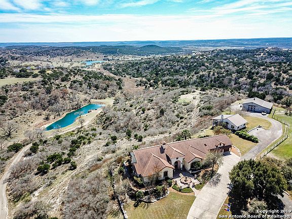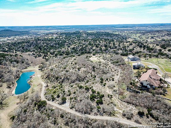 Breathtaking views and starry nights all awaits you at this beautiful estate in the Texas Hill Country! Situated on 62.16 +/- ac. Main home has open living, gourmet kitchen, trophy room/study, central vac & 3 car garage. Guest house has tremendous views w/ full kitchen. Morton brand metal barn is 45x35 w/ concrete floor, 2 horse stalls, 2 dog runs. Newly added Skeet range. Pond is stocked w/ catfish/bass w/ auto fish feeder. You'll find Black Buck, Sika, Rams & Axis roaming the acreage. Hunting allowed.