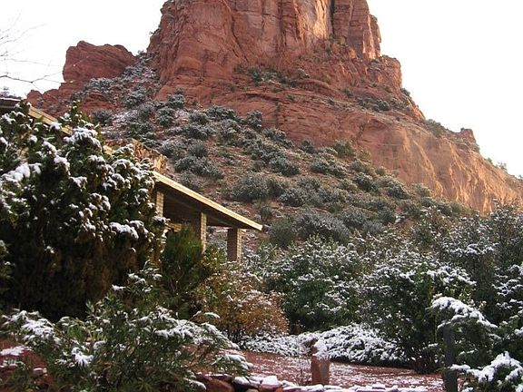 Remodeled slump brick home with stucco eves/trim, ceramic tile flooring throughout, with wood grain Trex decking on two sides, Pella sliding doors overlooking entire Valley from living room and covered porch and backyard opens to the base of Castle Rock. One of highest lots in the Village of Oak Creek with fully landscaped yard, with large pines and mature vegetation. New roof (1 yr) and new mahogany kitchen cabinet and high end appliances.