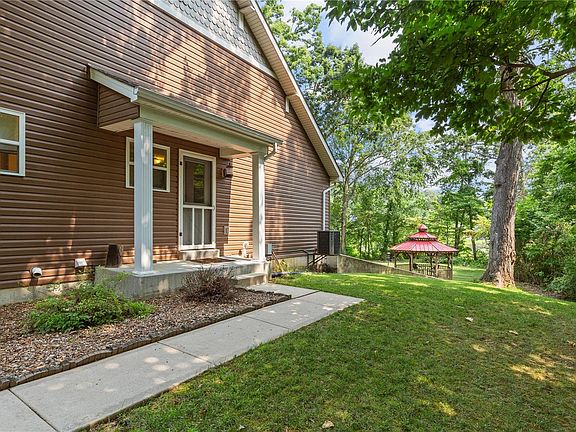 ATTENTION ALL NATURE LOVERS!! If privacy is what you are looking for THIS IS IT!!! This secluded home sits on 2.78 acres with lake access. One of 8 homes on the 5 acre private lake. Well maintained, one owner home! Before entering you will notice the custom built bridge that leads to the covered front porch. Plenty of room for rocking in your favorite chair while watching the deer and turkey roam. There is a two car garage with a poured foundation for a 3rd bay which already has a building permit on file. Shed and high end gazebo that both have power. The dock also has power and water ran to it. Upon entering the home you will notice the hardwood floors, vaulted ceiling and gorgeous fireplace. The kitchen boasts a custom made entryway. High end kitchen appliances/granite counters. Home features two masters with en-suites/ one on each level. Walk out basement to your own slice of privacy heaven! One year Cinch Home Warranty provided. Seller has a list of toys he is willing to sell!