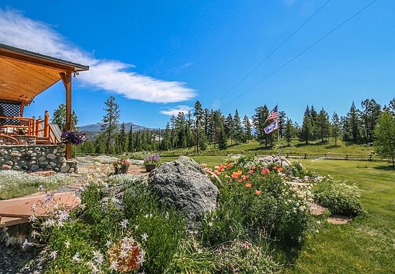 • Exterior Features: Acreage Fenced, Deck, Garden, Irrigated, Landscaping, Mountain View, RV Parking, Sprinklers, Manual, Storage Building, Recreational, Wooded Acreage, Pond, Shop, Adj to National Forest, Covered Deck