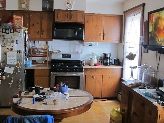 Investors take note. Large 3 Family set back from road with off street parking. First floor features master bedroom with master bath and laundry room. Hardwood floors through out. All 3 apartments feature a very large eat-in kitchen. Rents are below market value. Separately metered, tenants pay for own utilities. Newer boiler for first floor. Rubber roof tops this house. Level back yard that is very manageable.