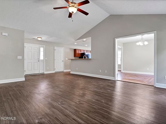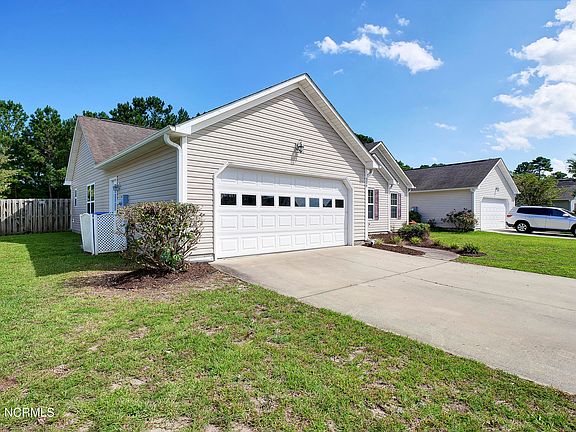 Amazing 3-bedroom two bath home located in Neighborhoods of Holly Ridge. Built in 2008 on a landscaped fenced lot, this 0.18-acre property is close to Award Winning Topsail Beaches, Surf City shopping, Restaurants, and Camp Lejeune. Exterior features include vinyl siding, raised panel shutters and two car garage. Interior features include Laminate floors gas fireplace. vaulted ceilings, ceiling fans, and low vinyl windows. The kitchen features wood cabinets, recessed lights, breakfast nook with three lamp chandlier, and matching appliances. Off the kitchen is a large pantry that leads to a full-size laundry room. The formal dining room features low vinyl windows with a brushed nickel five lamp chandelier. The master bedroom has plenty of room for a king size bed set, an open-air ceiling fan and low E vinyl windows. The master bath is designed with raised dual vanity, linen closet, walk-in shower, garden tub, and walk in closet. The guest bedrooms have ceiling fans with carpet and low E vinyl windows. Additional features include rear patio, garage door opener, gutters, fire pit, and 6FT shadow box fence. The Neighborhoods of Holly Ridge is located in Holly Ridge with easy commutes to Jacksonville, Camp Lejeune, Topsail Island and Wilmington.