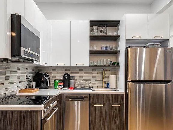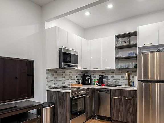 *Welcome Home to a Sunny, Brand-New 1 Bed/1 Bathroom apartment in Williamsburg!* This home was just completely gut renovated and is now ready for you to move in. Featuring a brand new kitchen with entirely new appliances including a dishwasher, lots of cabinet storage, a basin sink, a refrigerator with a wine rack, a dishwasher, and an in-unit washer/dryer! The rest of the apartment has massive, sunny windows, deep closets, split A/C units, brand new hardwood flooring, modern light fixtures, a view of the entire New York skyline and an en-suite full bathroom in the master bedroom. The apartment also includes access to a virtual doorman system, a dining nook, high ceilings, and tons of kitchen storage space. The building features a rooftop for residents where you can trace every building of the NYC skyline, including the Koscioszko Bridge, the William Vale, and the entire Manhattan skyline. Nestled in between between Manhattan and Bushwick, you cannot beat this location. A five minute walk to the water, a block from the Skate Park and a few blocks from McGolrick Park, and within a few minutes to all the coffee shops and groceries you need. Half of a block to the B24 Bus stop and nearby to the Graham Street L. Gurantors and Pets welcome. Inquire today for your in-person private showing! Virtual tours also available. Smoking allowed:No