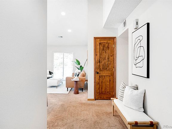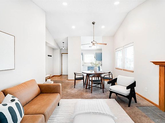 Open-concept living merges with a sought-after location within this sunlit, top-floor residence. An end-unit orientation immerses the interior in natural light, magnified by vaulted ceilings and a neutral color palette. The open living space is grounded by a fireplace, creating an inviting warmth that flows into the adjacent dining area. Nearby, the kitchen maximizes use of space with generous cabinetry. Solid wood doors permit entry into the spacious primary suite, where an updated en-suite bathroom showcases sleek tile and pristine fixtures. A walk-in closet affords ample storage while bright windows saturate the bedroom in natural light. The manicured grounds bloom in spring and summer and can be enjoyed from the privacy of a spacious balcony. With a recently serviced HVAC system and an attached garage, residents are afforded convenience and comfort. Close proximity to restaurants, parks and shopping ensures that this home is a basecamp for both urban and mountain adventure. Each unit also gets one parking pass in addition to the garage spot.