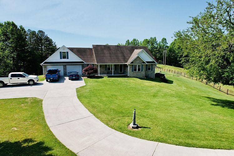 This unique property is a must see, only minutes from shopping and schools yet with a country feel. Sitting on 11 + - manicured acres that adjoins the national forest, this 3 bed 2 1 2 bath home offers hardwood and tile floors throughout. The master bath offers a jacuzzi tub and heated floors. Plenty of beautiful oak cabinetry in kitchen with cathedral ceilings in family room. The sunroom has a wood burning hot air furnace that is ducked throughout the house that will comfortably heat the entire home and comes with several seasons of wood. It has a 5ft height crawl space with a concrete floor for storage. The back yard has an entertaining area w a fire pit and is fenced in for your dog. The acreage is also fenced in for horses, cattle etc. and offers a large barn with concrete floor, water, electric, and loft. Another storage building also on the property to store your boat , 4 wheelers, side-by-sides etc. While riding the trails be-sure to check out the beautiful scenery of the creek that runs through the back of the property.