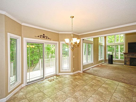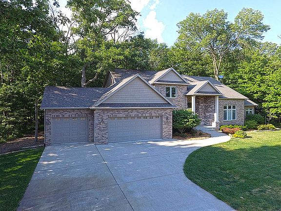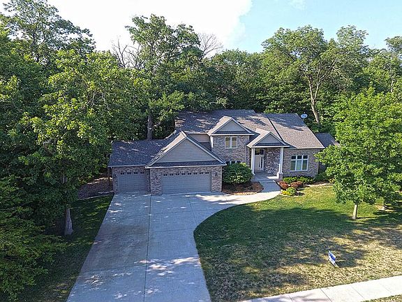 This lovely home sits on almost an acre wooded lot and is just a quick walk to the 24 acre Fletcher Park with its pond, large playground, walking trail, and tennis courts. Its varied roof lines and mix of exterior material including stone combine for a clean, elegant exterior. You will love the newly re-finished maple hardwood flooring as you enter the inviting and spacious foyer with its cathedral ceilings. The formal dining rooms flows easily to a gourmet kitchen with snack island and light-dappled breakfast area. Main floor master suite with with huge walk-in closet, soaking tub and dual lavs. New carpeting there and in family room with its peaceful views through bank of windows, fireplace, surround sound and flat screen TV. Finished lower level boasts room for extra sleeping, home gym, storm or potential safe room, bath and so much more. This light-filled home is within walking distance to the Mt. Zion Intermediate, Jr. High, and High Schools. Enjoy pleasant summer evenings on the private, spacious composite deck or under trees in the freshly mulched and wooded rear. Automatic underground sprinkler system installed for your convenience as well.