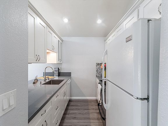 Updated Kitchen, Hardwood floor, Bathrooms. Ample guest parking. Top rated schools nearby. Master suite with balcony. Vaulted ceilings. Situated in the highly desirable Warm Springs District of Fremont, this bright and beautiful home offers comfort and convenience. It features two spacious bedrooms and two full baths, with vaulted ceilings in the living room and both bedrooms, adding an airy and open feel. The updated kitchen boast soft closing shaker cabinets and quartz counters. The master suite boasts two closets and opens onto a generous balcony with two storage spaces, providing a serene view of the hills. Enjoy cozy evenings by the fireplace in the living room. The unit includes a one-car garage with ample guest parking. Situated near top-rated schools, including James Leitch, Warm Springs Elementary, Horner Middle School, and Irvington High. You'll also be close to grocery stores, restaurants, banks, the Warm Springs Community Center, a park with tennis courts, and the new Warm Springs BART Station. With easy access to the 680 and 880 freeways, this home combines convenience with a prime location. *Shown by appointments only. Owner pays HOA(includes water, garbage). Renter pays electricity. No Smoking inside property.